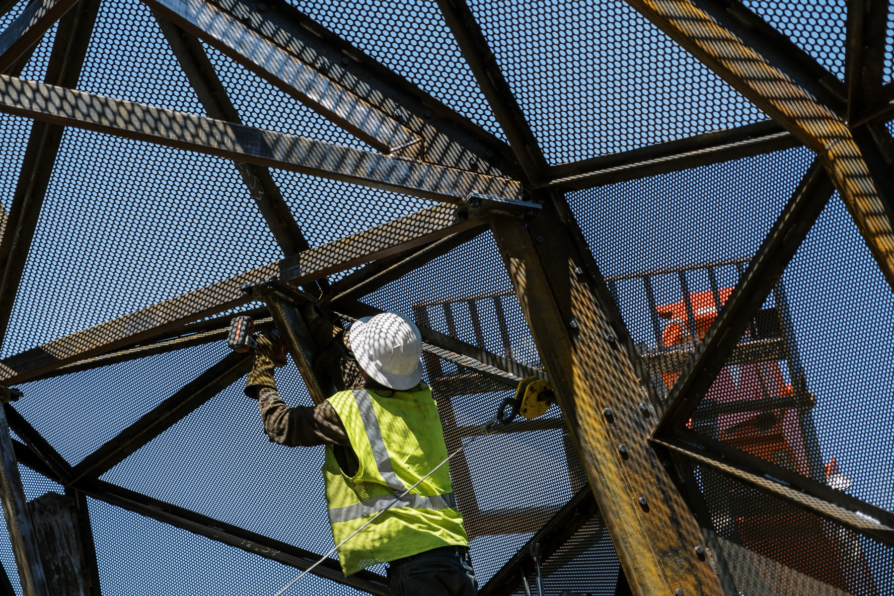 Fabrication and erection of the rhino were completed quickly with no RFIs required between the JunoWorks and CRAFT teams. Eldorado Climbing prefabricated the climbing surface system through coordination with the 3D fabrication model, enabling a similarly smooth installation. Final touches of colorful paint and climbing holds contrast with the industrial aesthetic of the Corten steel facet frame, brightening the public space while referencing RiNo’s historic factories. Through shared model collaboration and advanced digital design tools, the team successfully added another giant to Denver’s growing collection of animal-inspired structures.