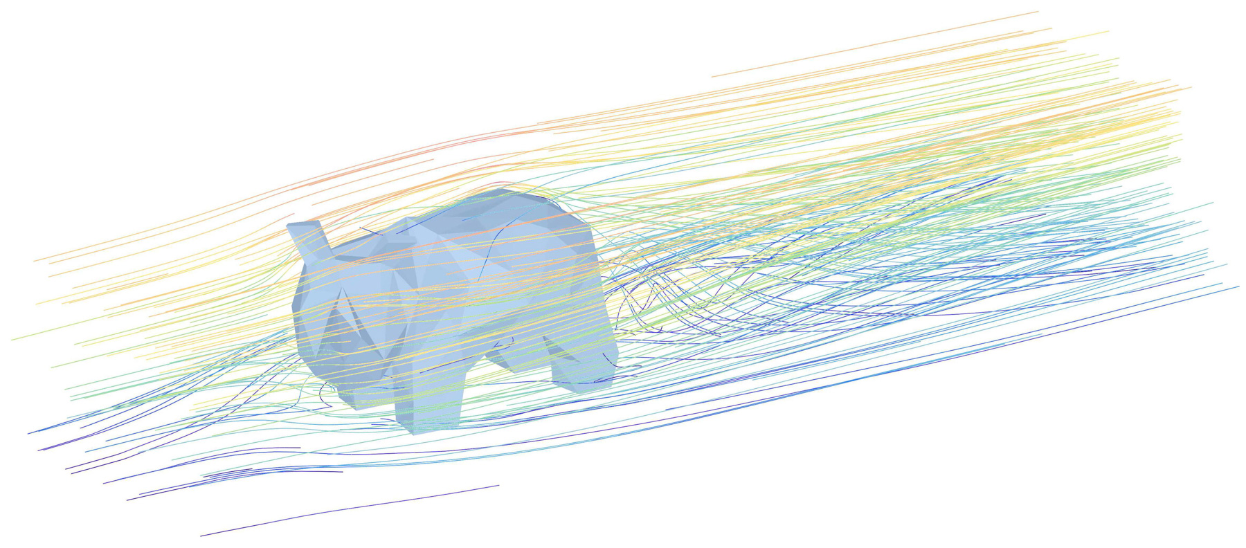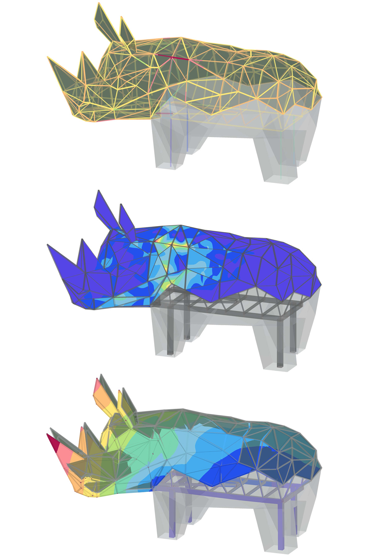 Virtual wind tunnel studies were conducted to better understand the effects of wind on the rhino’s unique shape. The cantilevered, slightly askew head created loading scenarios difficult to capture with code-based methods. CRAFT used wind tunnel software to apply simulated loads directly to the structural FEA model, ensuring adequate performance during windstorms.
