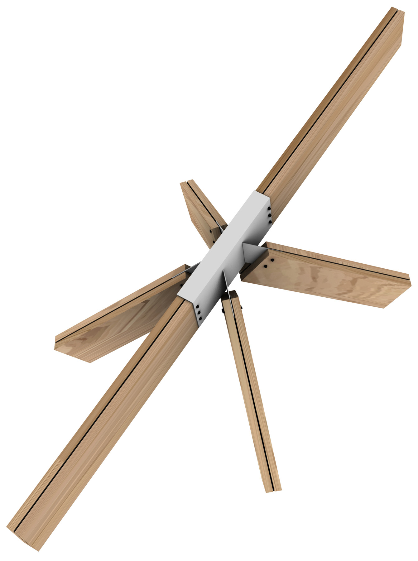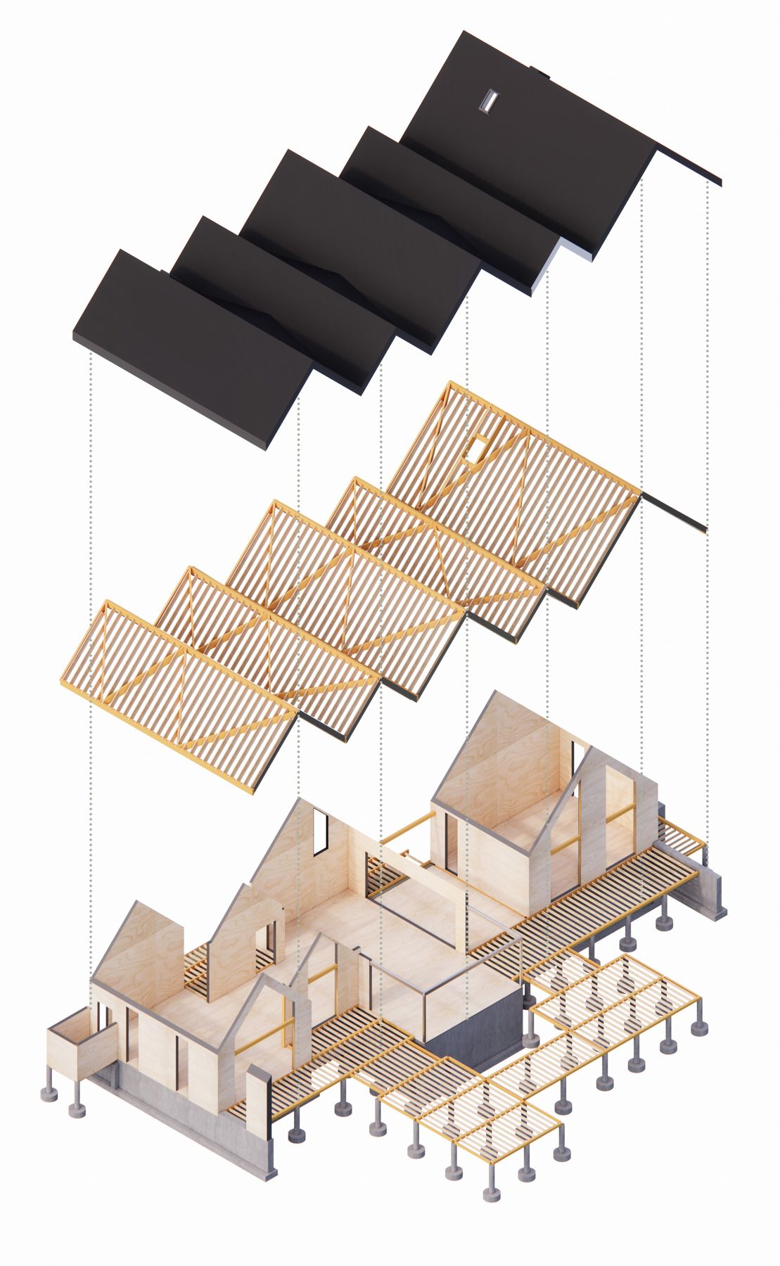 The roof components form a triangulated system where stiffness and strength are developed not only from the material itself but from the geometry of the folds. The models helped demonstrate how the structural logic could remain expressed while still serving the architectural vision of an open pavilion.